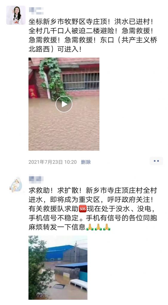 “转扩,新乡急需皮划艇冲锋舟!”“新乡市寺庄顶村已被洪水淹没,急需救援!”7月23日,朋友圈里一则则求救信息,令人揪心!