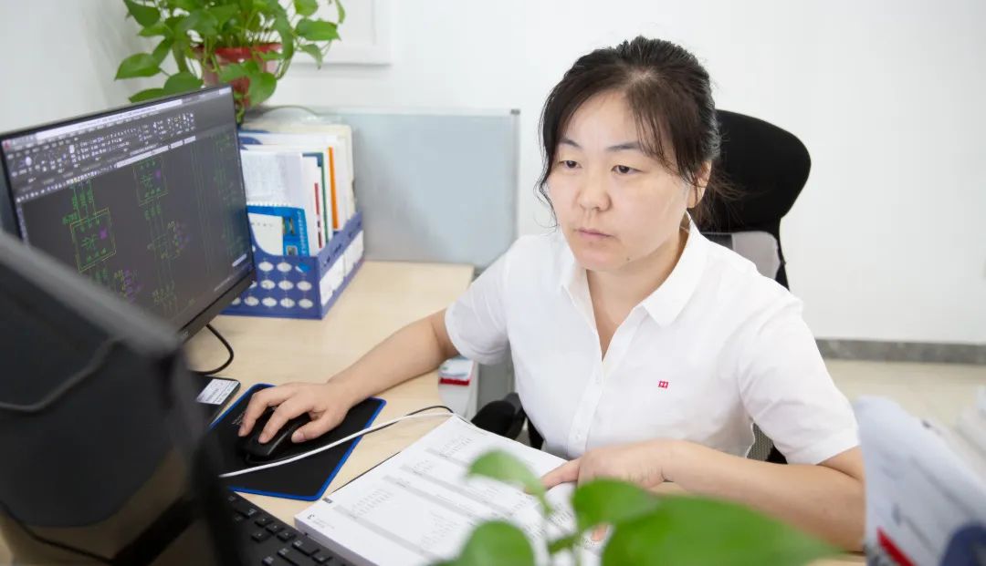 该项目意义重大,由研发中心总监丁海洋牵头成立项目组,陈爱梅作为具体执行人,对项目各节点进行组织协调,严加把控,线上设计,线下指导,执行该重大项目的全程跟踪。由于产品自身极为复杂,电气图纸截至目前已有700多页,并且伴随项目的推进,设计图纸的厚度还在不断的增加中。虽然如今暑热难耐,但是陈爱梅总是出现在生产现场,和生产班组积极沟通,对他们进行技术指导,协助班组员工解决安装布控问题。女性温柔细致的禀赋也对项目的推进起到了重要作用,陈爱梅所在的项目组长期保持着一种团结奋进的氛围,项目组所有成员齐心协力,攻坚克难,共同保证了项目的推进执行。