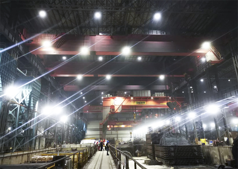 该项目中的beats365350t铸造起重机整车采用四梁六轨双小车结构,主起升减速机与车架为一体化,整体退火和整体加工的制造工艺保证齿轮、轴承、电机、制动器等的安装精度,使起重机运行更加稳定。