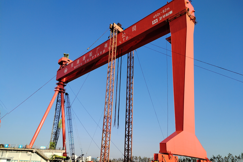 近日,beats365为芜湖造船厂 设计制作的首台大型龙门吊 顺利完成吊装