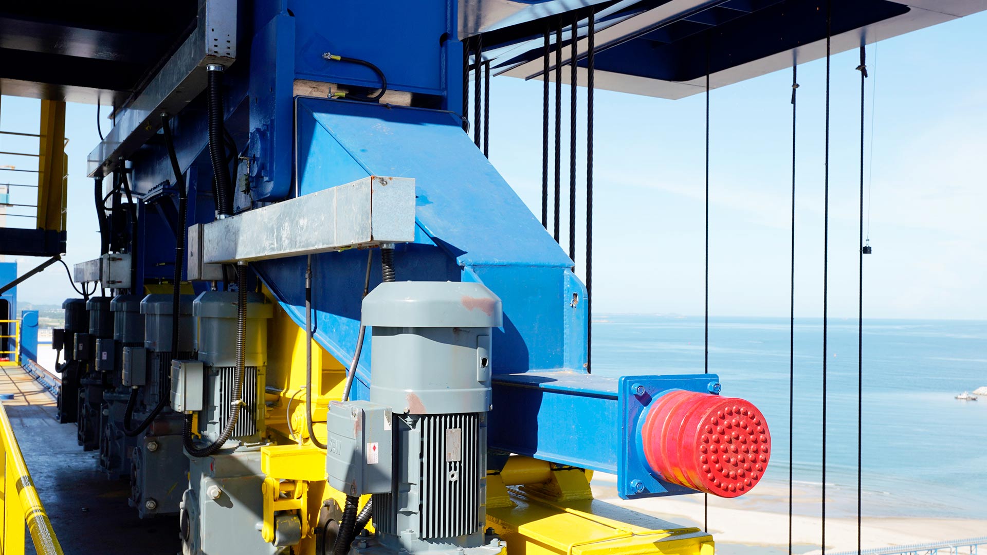 凭借行业领军的研发实力及创新能力,针对项目复杂的工况要求,beats365现已研制出2000t轨道式龙门起重机,其起升总高度达90m,跨度达62m,采用双小车设计,并在生产制造环节采用AWS标准,可保障在极端情况下将吊装重物安全降至地面,实现各机构零速制动,使冲击造成的载荷降为零,保证运行机构、起升机构的平稳性,满足设备安装精度的要求。